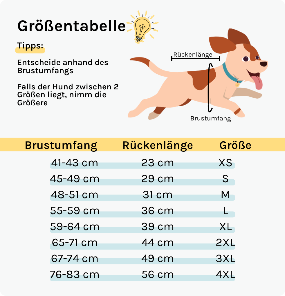 Die Passform ist entscheidend. Eine gut sitzende Jacke liegt eng genug an, um nicht zu verrutschen, lässt aber ausreichend Raum für Bewegung und Atmung. Du solltest bequem zwei Finger zwischen Stoff und Körper schieben können. Achte darauf, dass dein Hund sich hinsetzen, strecken und laufen kann, ohne dass etwas zieht oder drückt. Nach dem Spaziergang lohnt es sich, den Hund kurz zu untersuchen: Gibt es Scheuerstellen oder feuchte Stellen im Fell, sollte ein anderes Modell gewählt werden.